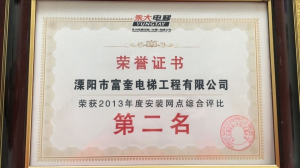 溧陽市富奎電梯工程有限公司 溧陽市富奎電梯工程有限公司是于二OO八年一月九日在原前身溧陽市電梯工程公司基礎(chǔ)上成立的,是專業(yè)從事電梯銷售安裝維修、保養(yǎng)的企業(yè)。是國(guó)家質(zhì)監(jiān)總局頒發(fā)的特種設(shè)備安裝、改造、維修A級(jí)安裝許可證單位。公司組織機(jī)構(gòu)實(shí)行總經(jīng)理負(fù)責(zé)制,公司下設(shè)管理部、銷售部、安裝維修部、質(zhì)安部、財(cái)務(wù)部,公司另外設(shè)十二個(gè)分公司:四川分公司、江蘇分公司、上海分公司、浙江分公司、湖南分公司、遼寧分公司、山東分...
